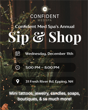 You’re invited to Confident Med Spa’s Annual Sip & Shop on Thursday, December 11th from 5–8 PM at our Epping office!