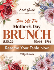 Come celebrate Mother's Day with brunch at 110 Grill! Available 10 AM - 3 PM on Sunday 5/10